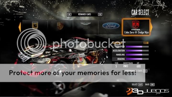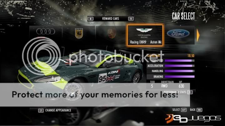 2006 Alfa Romeo Brera, 2004 Aston Martin DB9, 2007 Audi Le Mans Quattro, 2003 BMW M3 GTR, 2005 Ford GT, 2007 Jaguar XK, 2006 Koenigsegg CCX, 2004 Lamborghini Gallardo, 2004 Lamborghini Murciélago, 2007 Lamborghini Murciélago LP640, 2004 Lotus Elise, 2006 Lotus Europa S, 2005 Mercedes-Benz Clase CLK 500, 2005 Mercedes-Benz Clase SL 65 AMG, 2004 Mercedes-Benz SLR McLaren, 2006 Pagani Zonda F, 2004 Porsche Carrera GT, 2006 Porsche Cayman S, 2007 Porsche 911 Turbo, 2006 Porsche 911 GT3 RS.